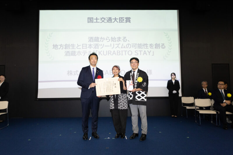 We are overjoyed to announce that our Sake Brewery Hotel® KURABITO STAY initiative has received the Minister of Land, Infrastructure, Transport and Tourism Award (formerly the Grand Prize), the top award at the Japan Tourism Awards.