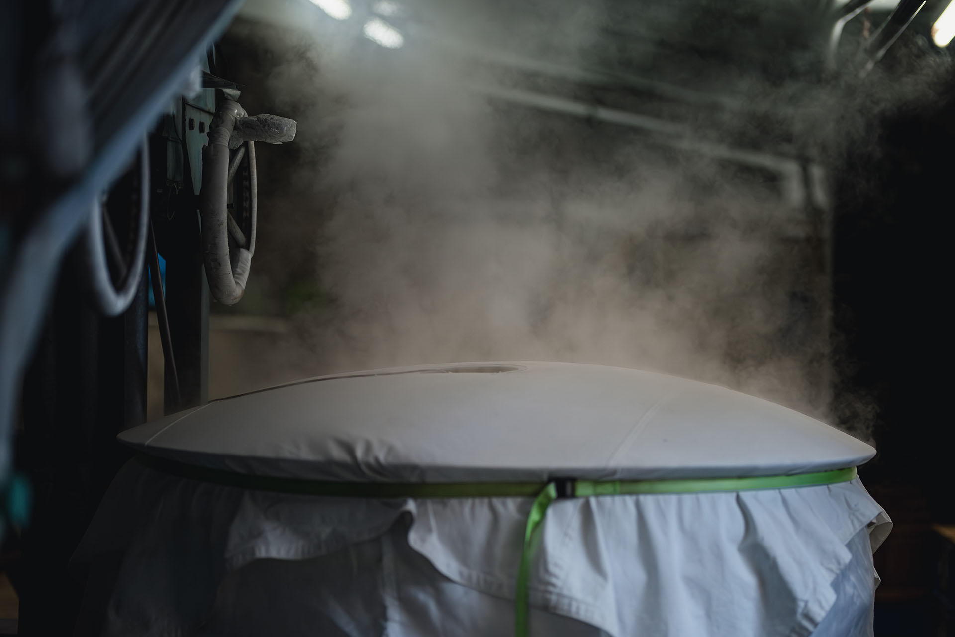 いよいよ酒蔵の中に足を踏み入れる時です。一歩酒蔵に入るとお酒の香りとひんやりした空気につつまれます。 前日に洗って乾かしておいたお米を蒸すところからスタートします。甑(こしき)と呼ばれる大きな蒸し器に洗ったお米を移し替えて、約1時間かけてお米を蒸していきます。