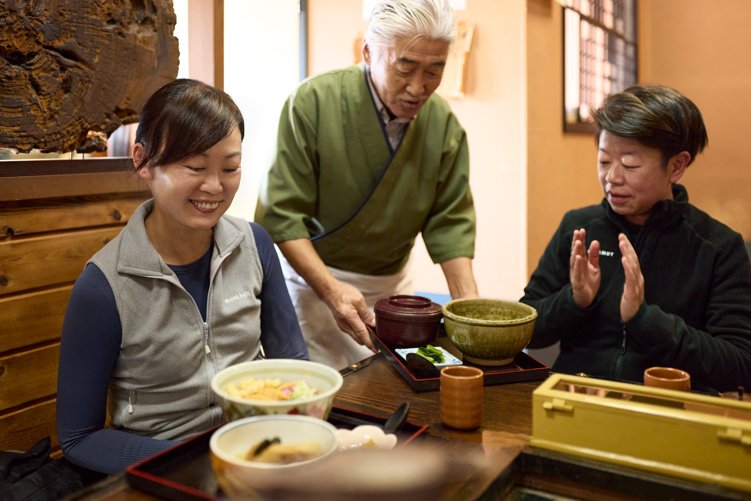 橘倉酒造第19代当主 井出 平社長との夕食懇親会をお楽しみください。食事はKURABITO STAY特別メニューで、蔵人のために特別に用意された店主の技巧が光る華やかな和食と佐久地域の日本酒をご提供します。お酒と同じように、ひとつひとつ丁寧に作られたお料理を日本酒とともにお楽しみください。